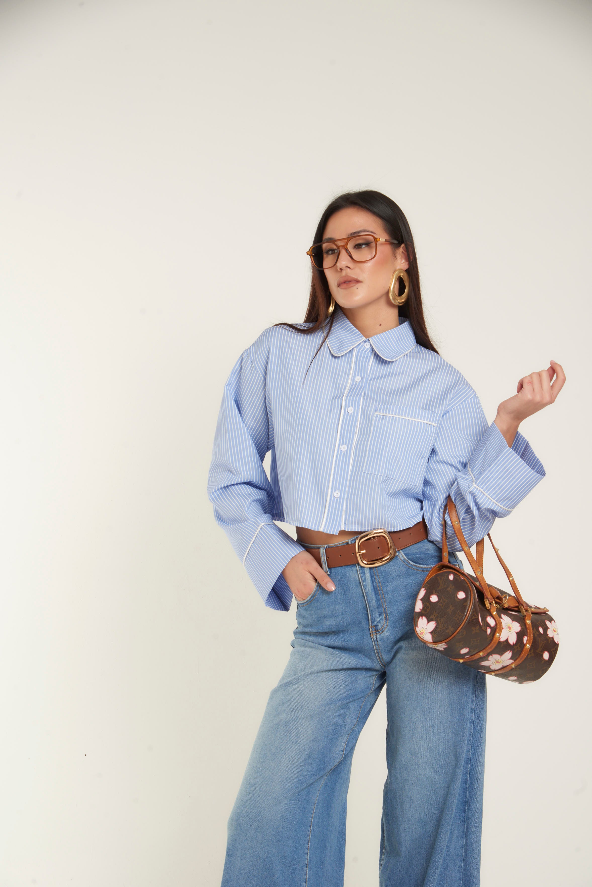 OXFORD PAJAMA CROP SHIRT