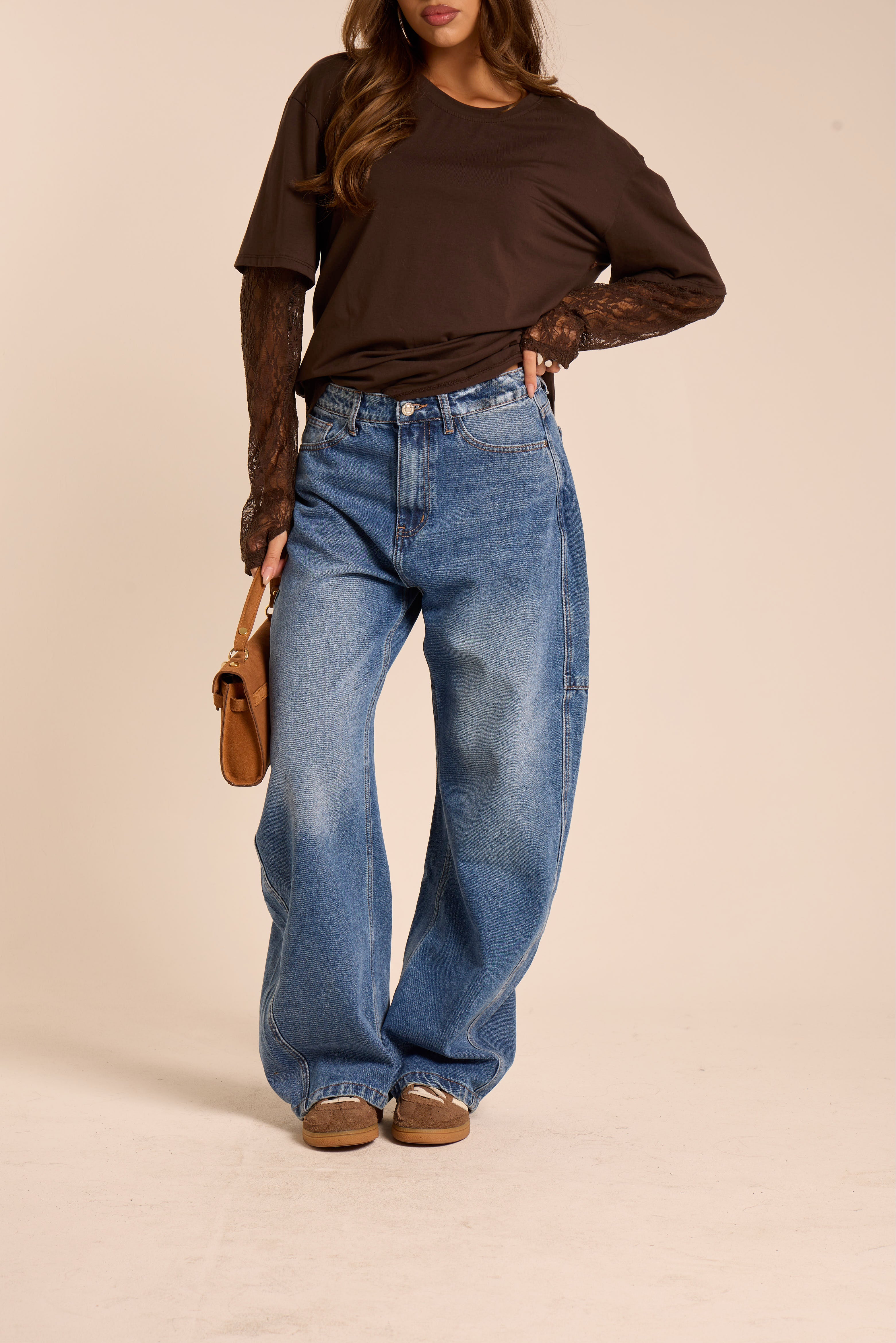 Jeans a gamba ballon. Relaxed fit. A 5 tasche. Passanti in vita per cintura. Chiusura con cerniera zip e bottone. Cuciture a contrasto colore.