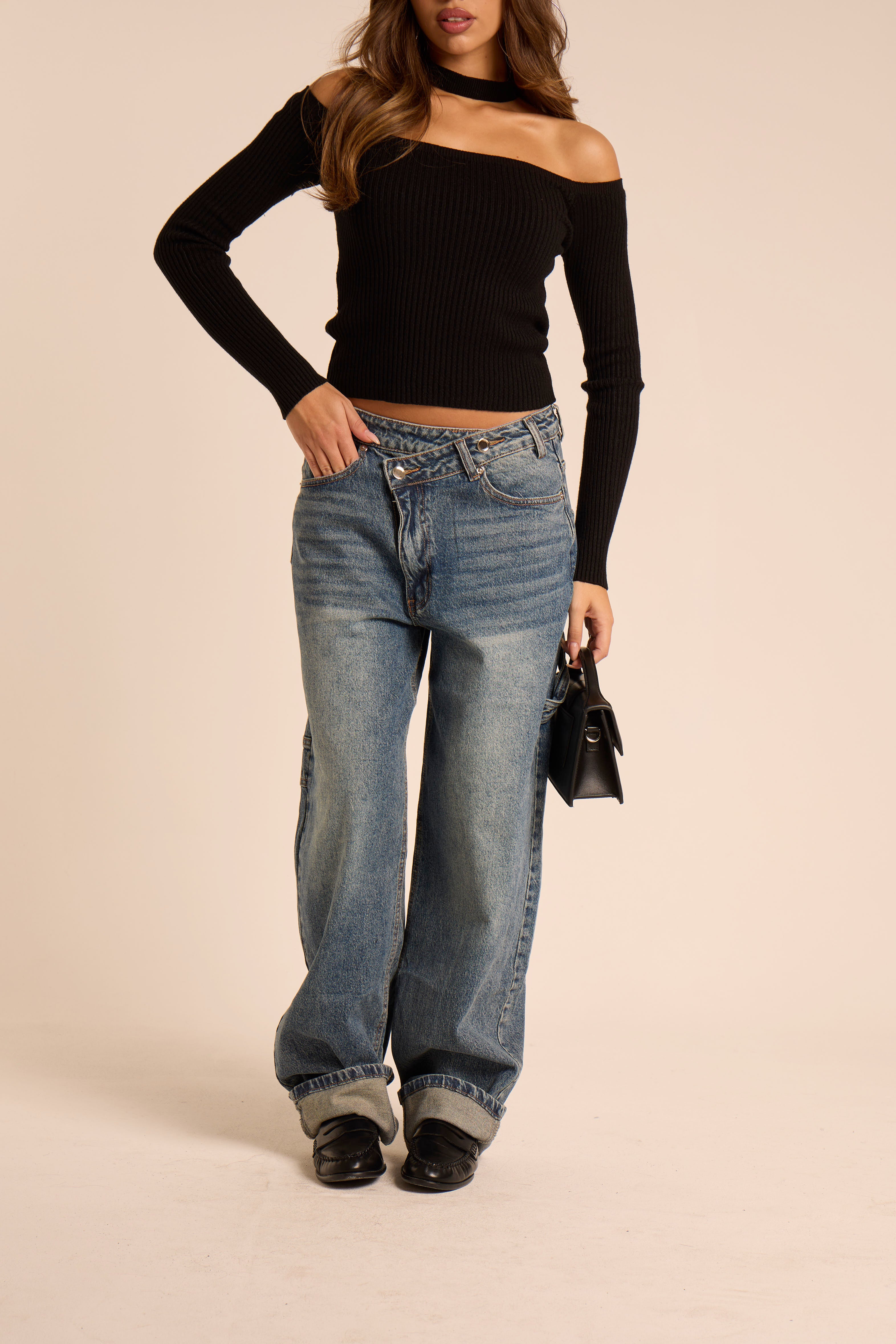 Jeans cargo intrecciato modello vita medio alta. Fit oversize. A 5 tasche. Passanti in vita per cintura. Chiusura con cerniera zip e bottone.