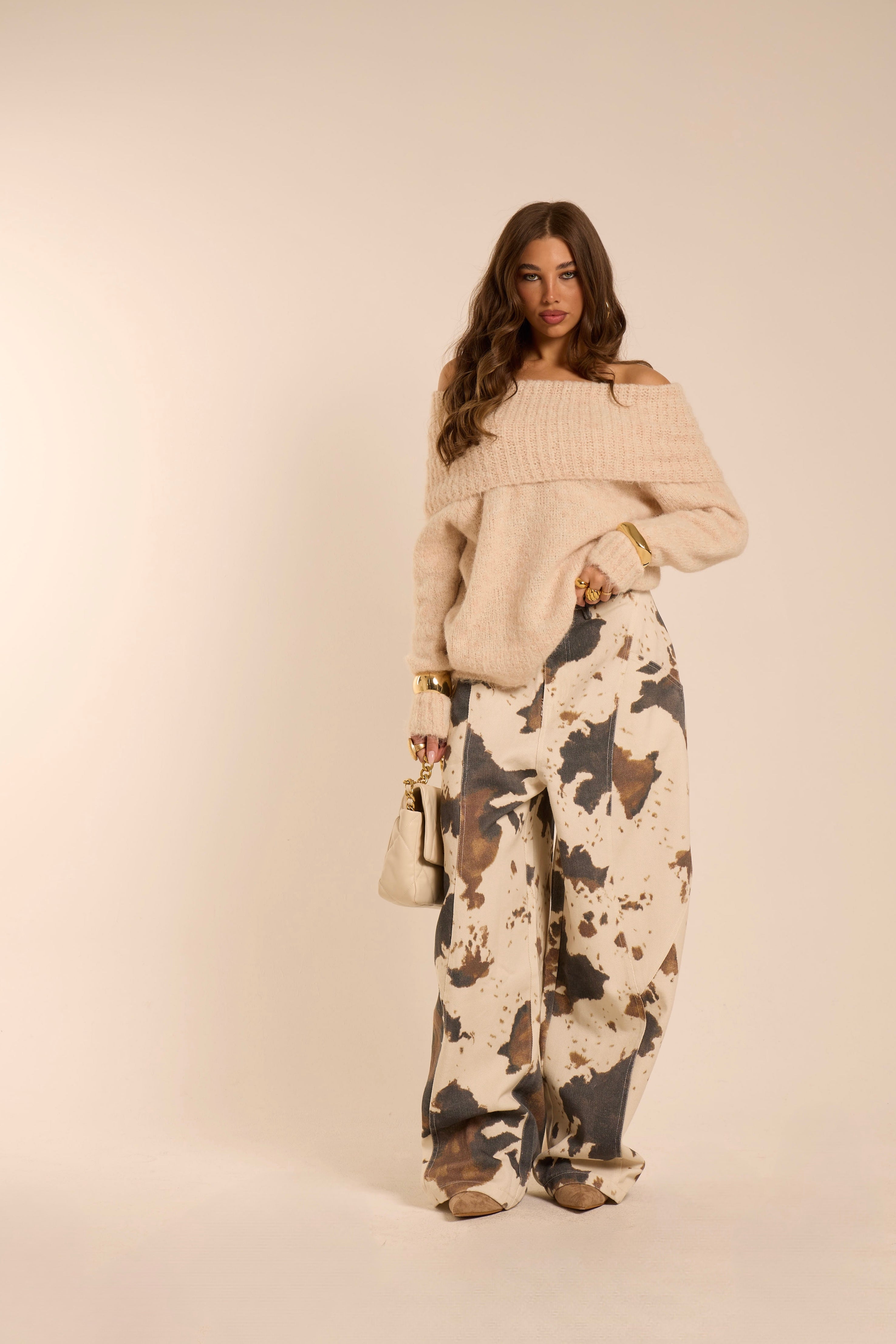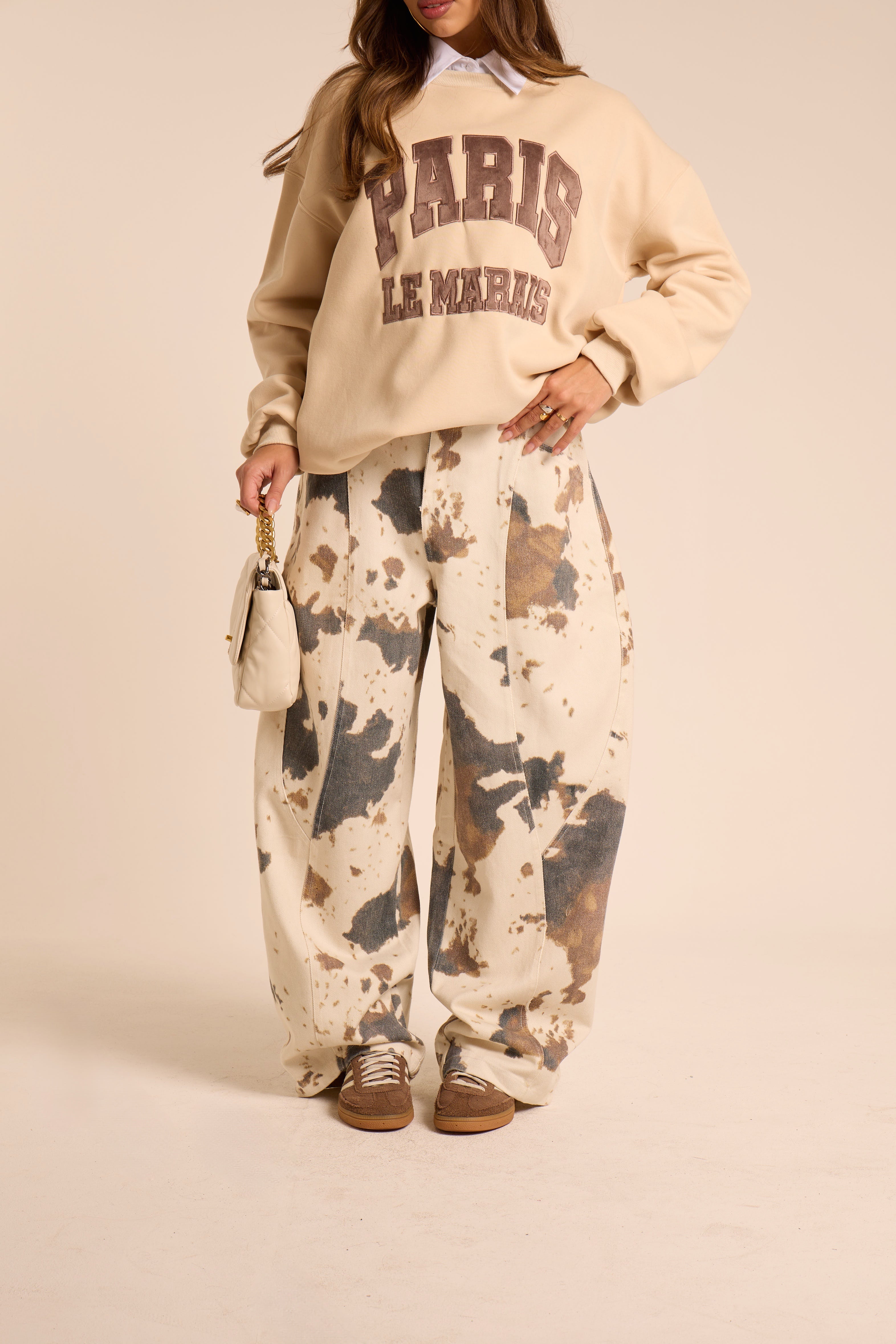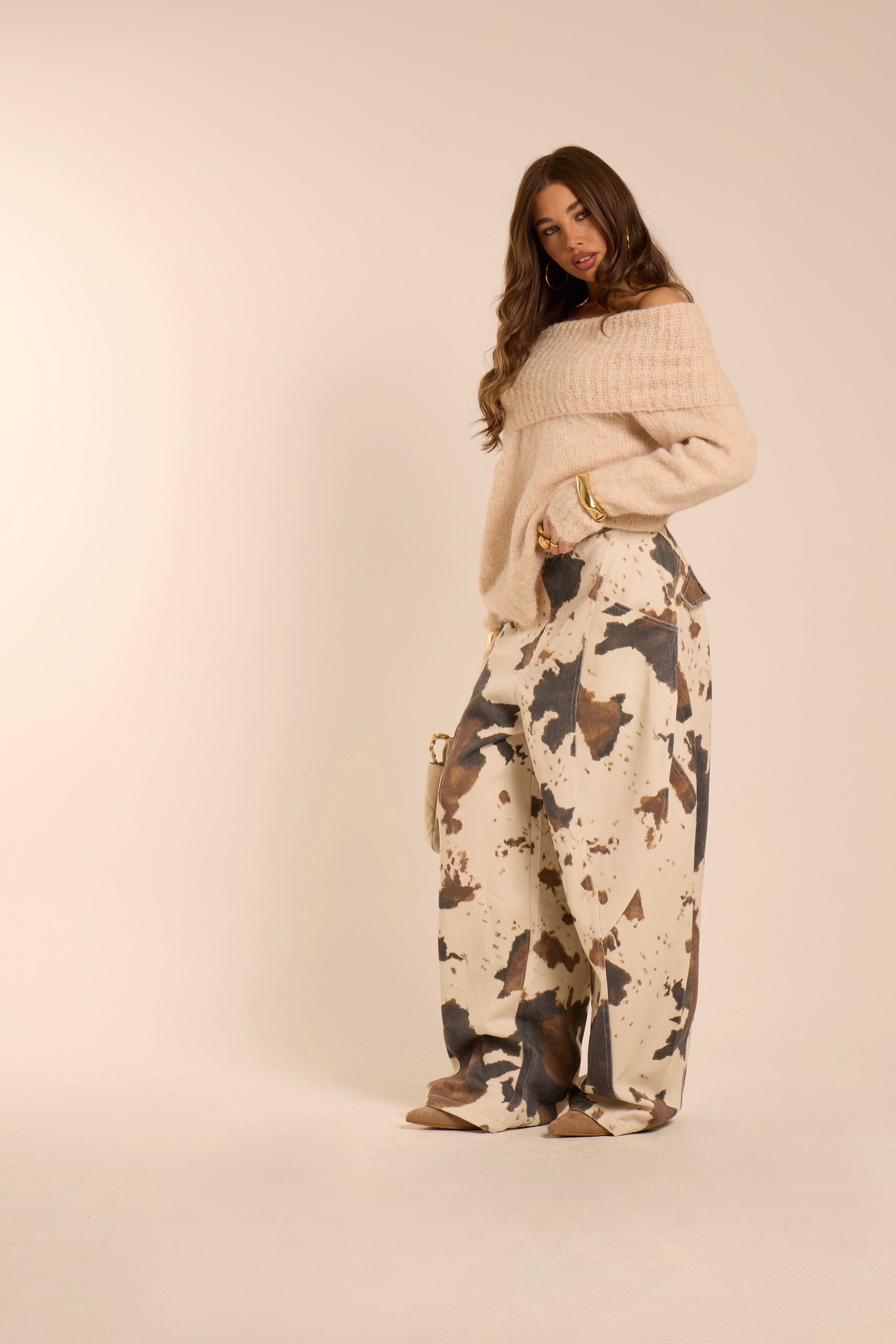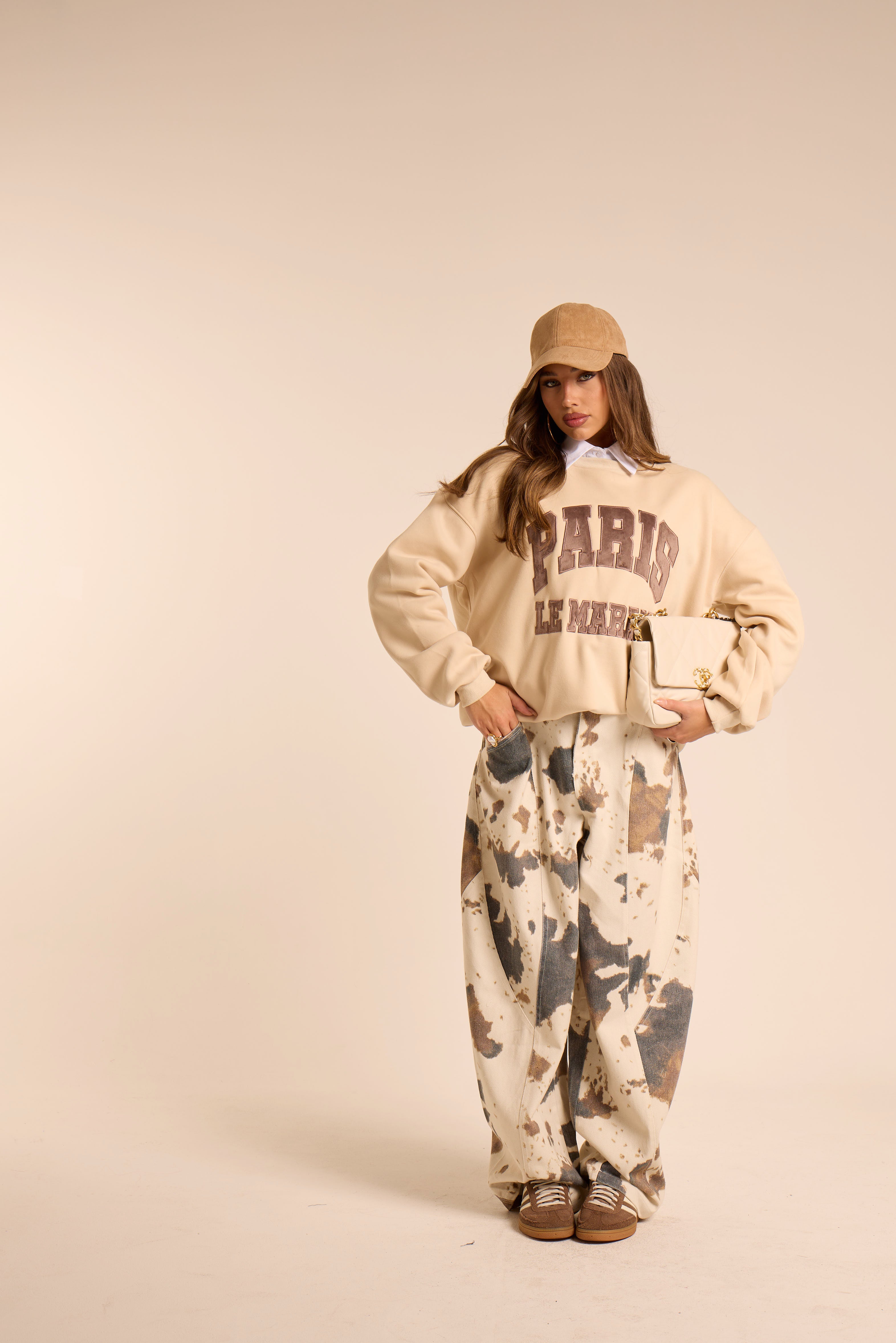 Jeans baggy extra balloon. Oversize. Trama muccata. A 4 tasche. Passanti in vita per cintura. Chiusura con cerniera zip e bottone. Effetto leggermente slavato.