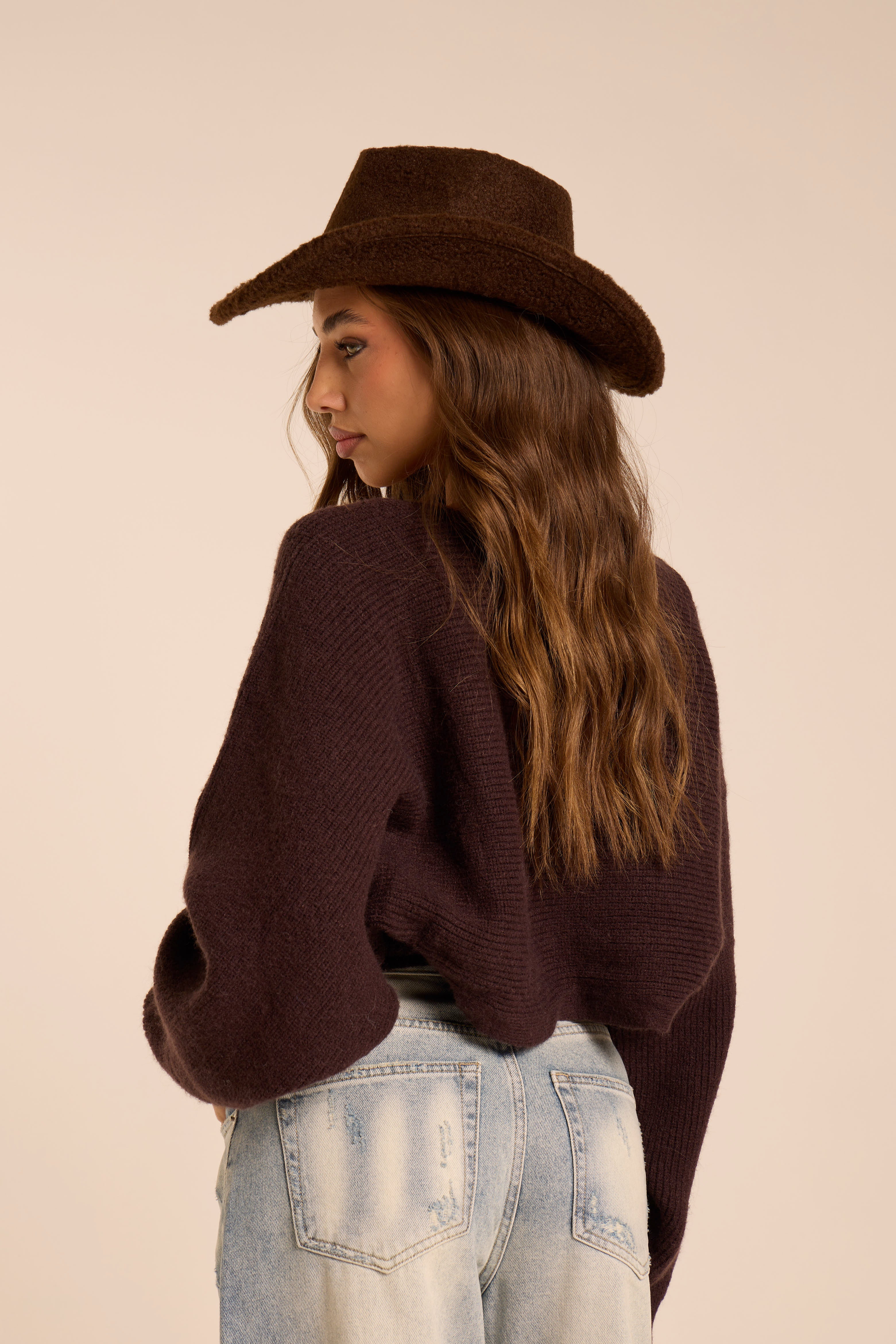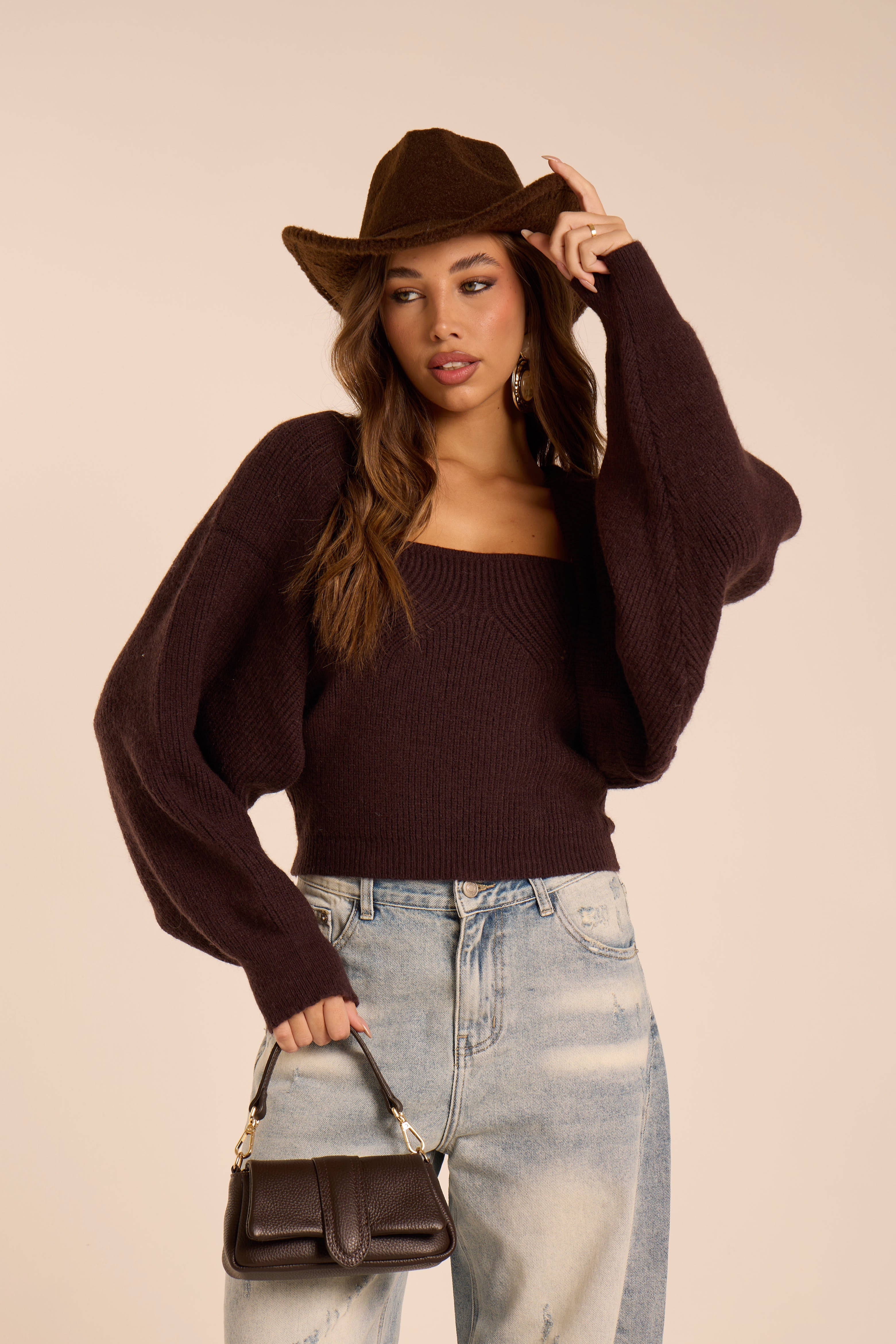 Set in maglia composto da coprispalle aperto e top. In maglia intrecciata. Cuciture e rifiniture a coste, tono su tono.