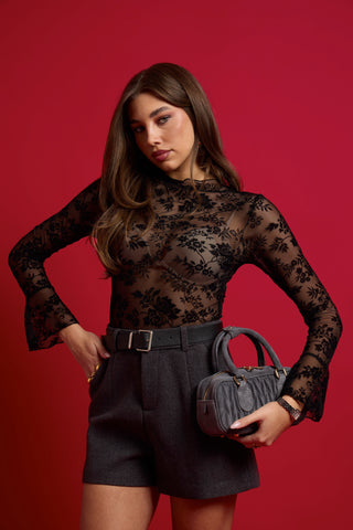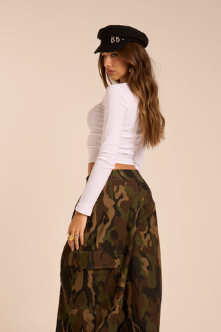 Top crop manica lunga con bottoni