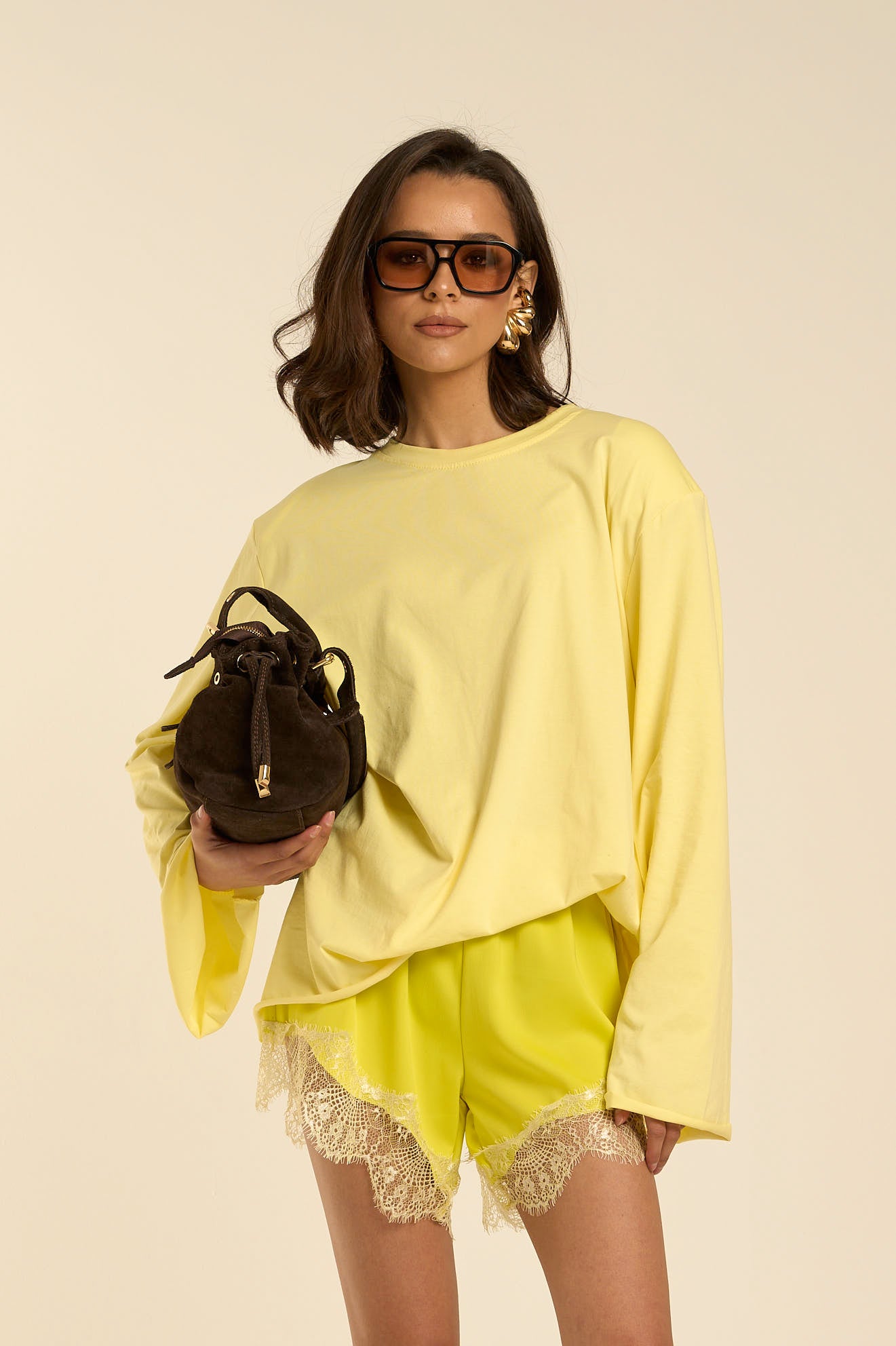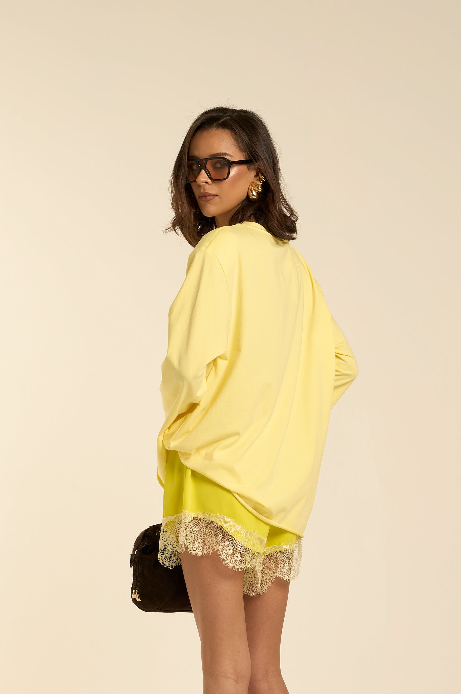 La modella in foto è alta 169 cm.