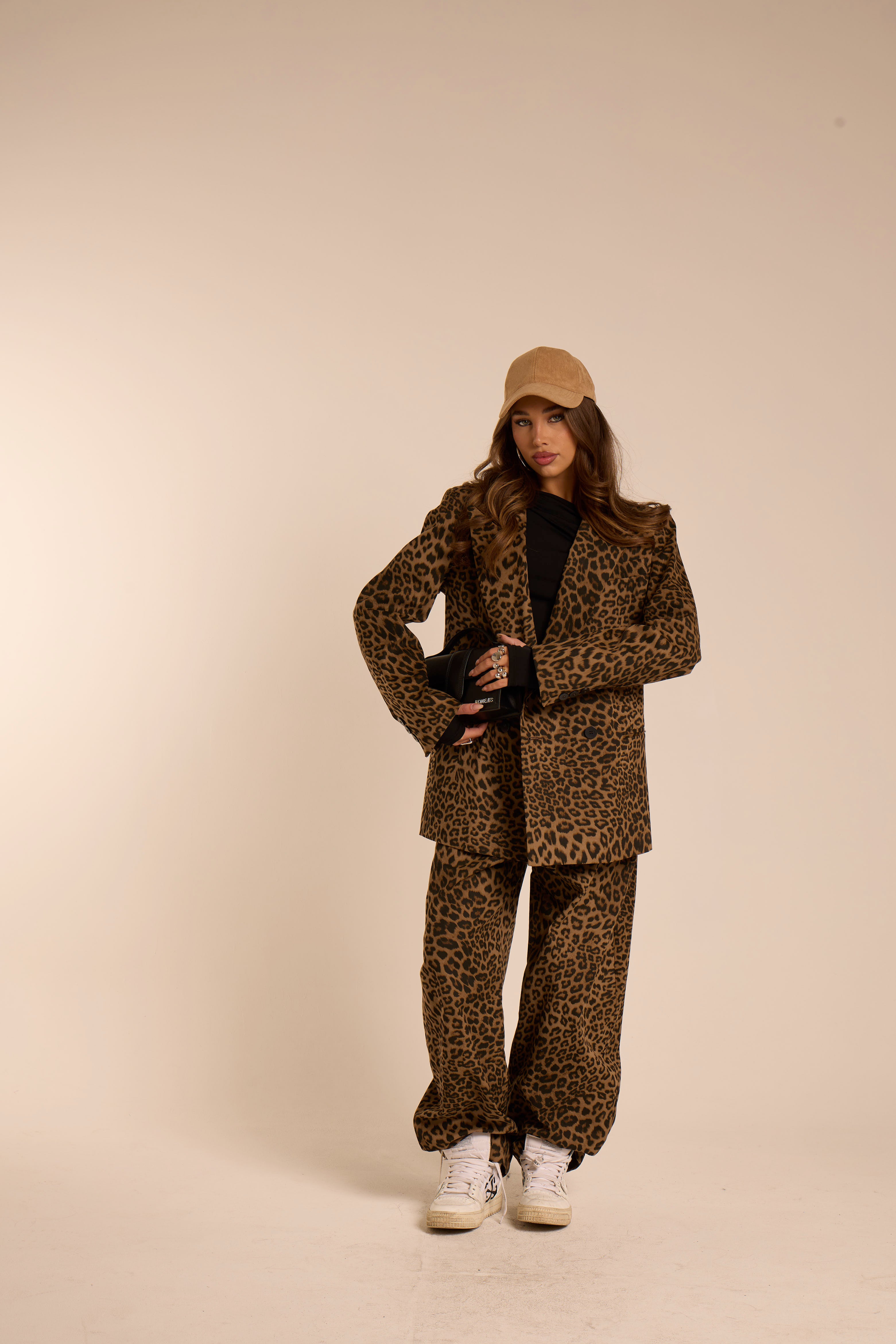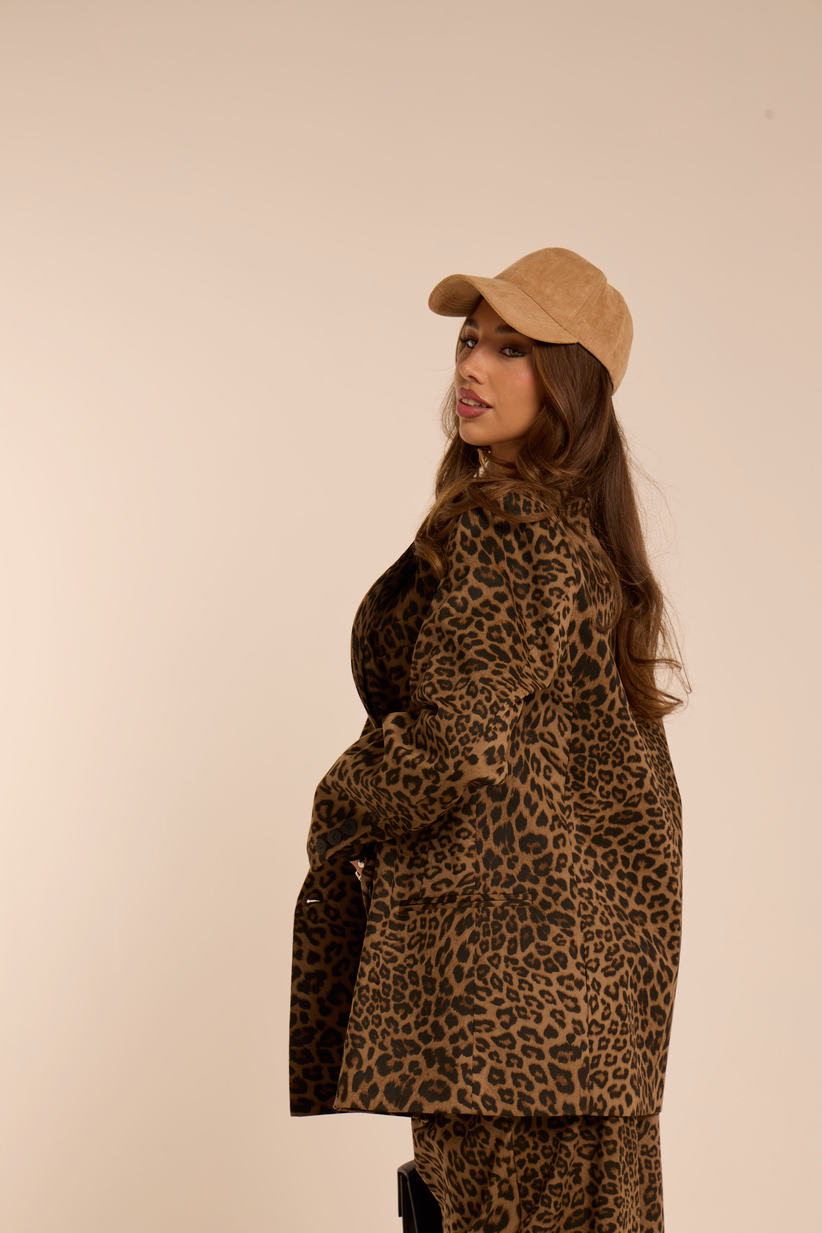 Blazer modello oversize. Intrecciato. Strutturato. Spallina imbottita. Foderato. Tasche in linea frontale. Chiusura frontale intrecciato con doppio bottone. Trama maculata.