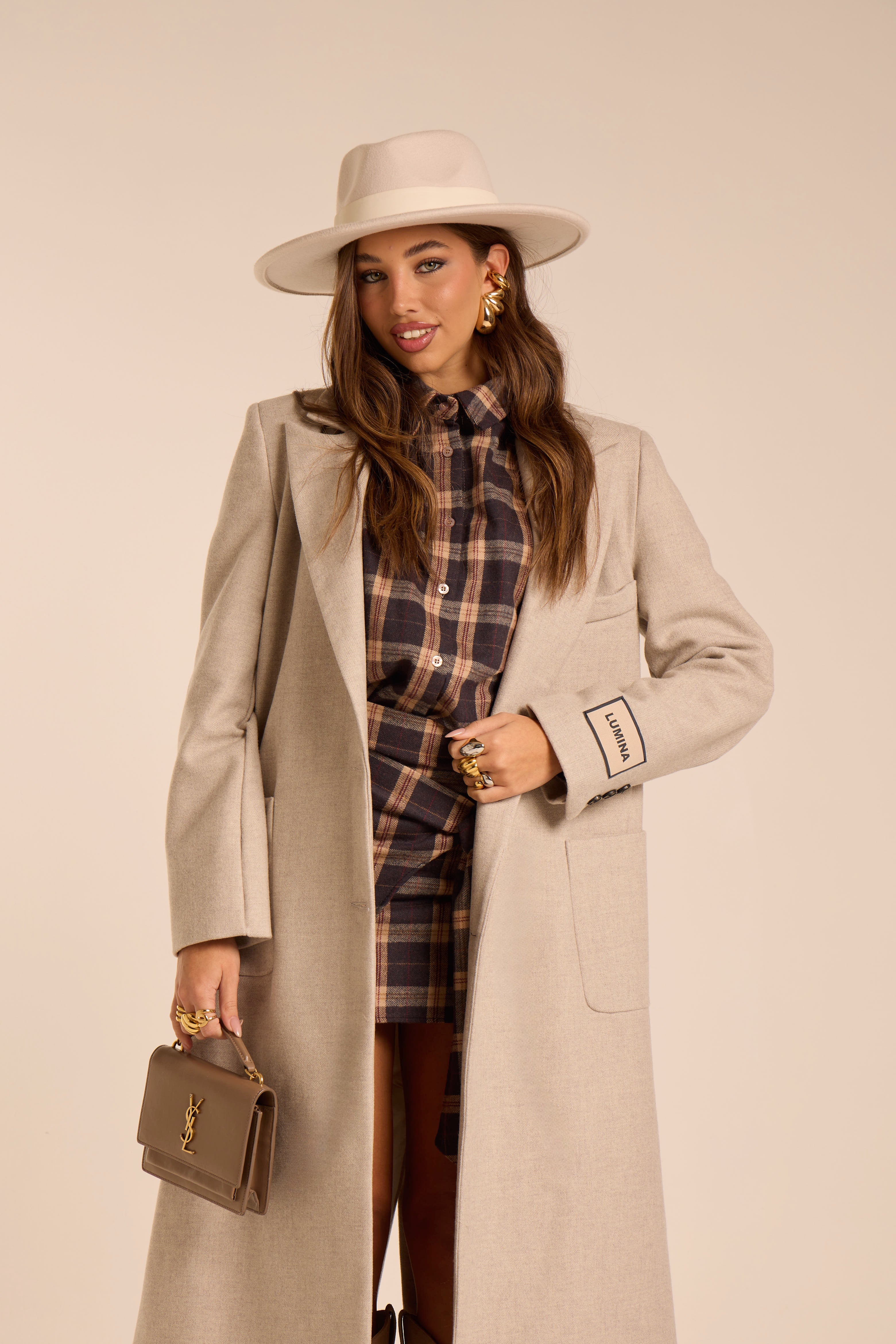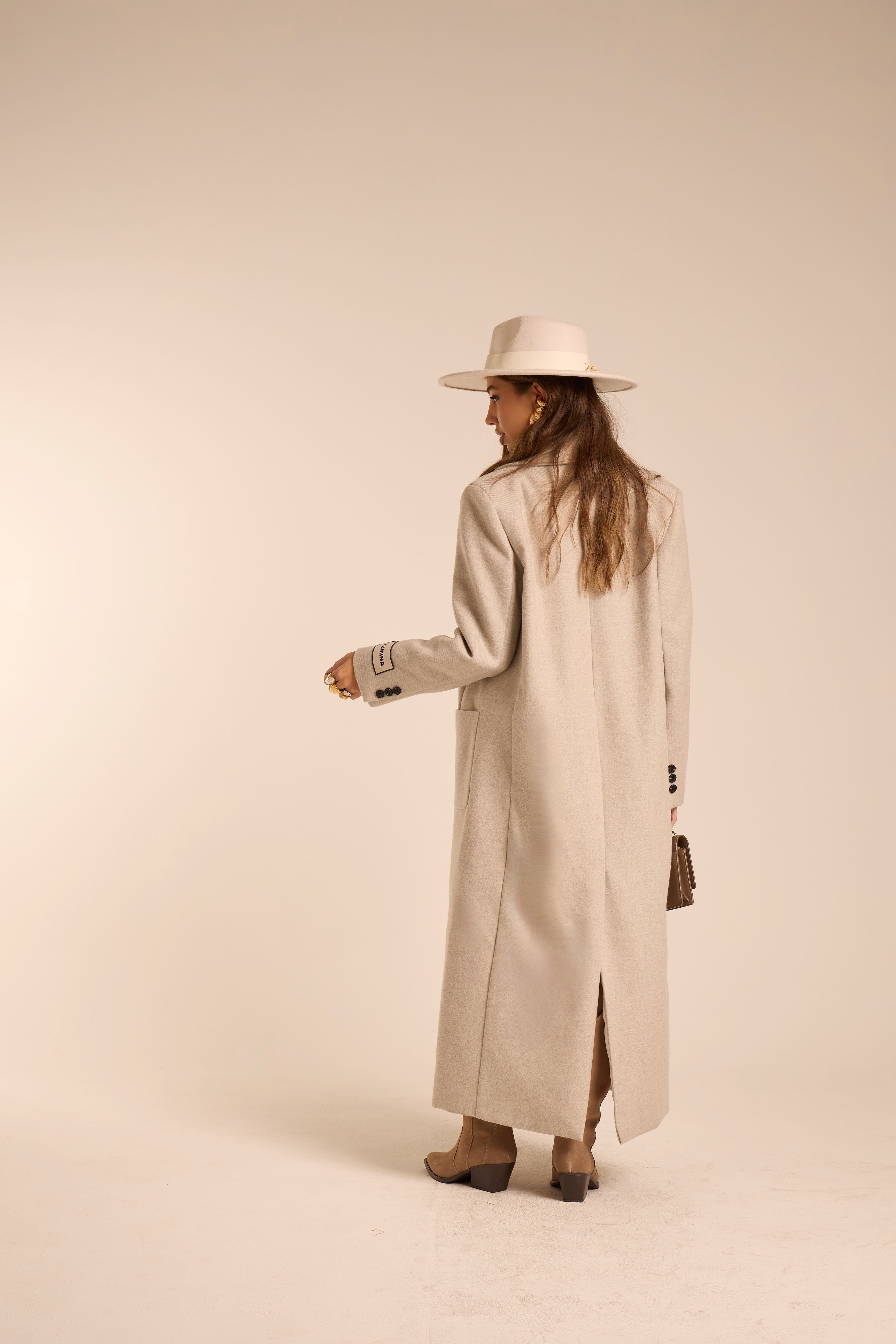 Cappotto con collo a revers, modello oversize. Spalle imbottite. Tasche ampie anteriori. Chiusura frontale con bottoni. Applicazione logo sulla manica.