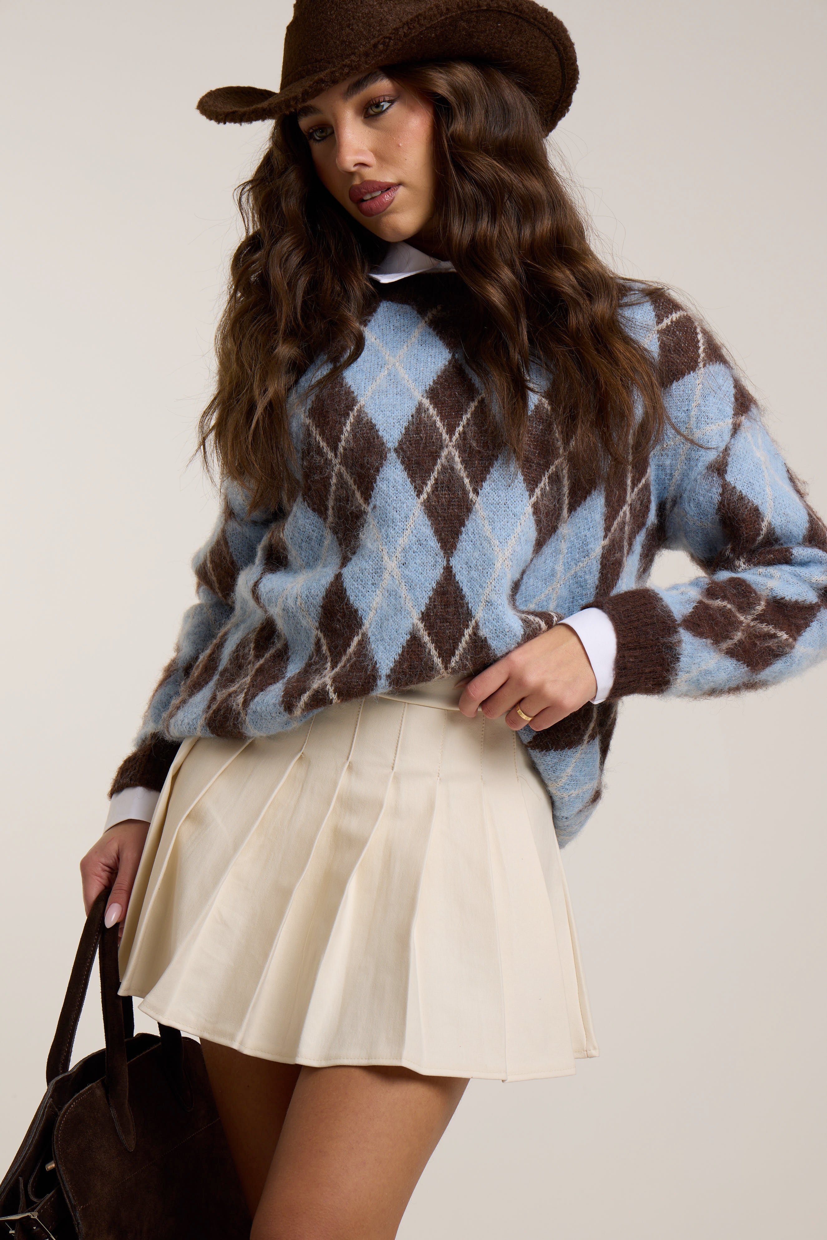 Gonna midi a pieghe strutturate. A vita regolare, fascia liscia in vita e pieghe distribuite in modo uniforme per garantire stabilità e movimento lineare.