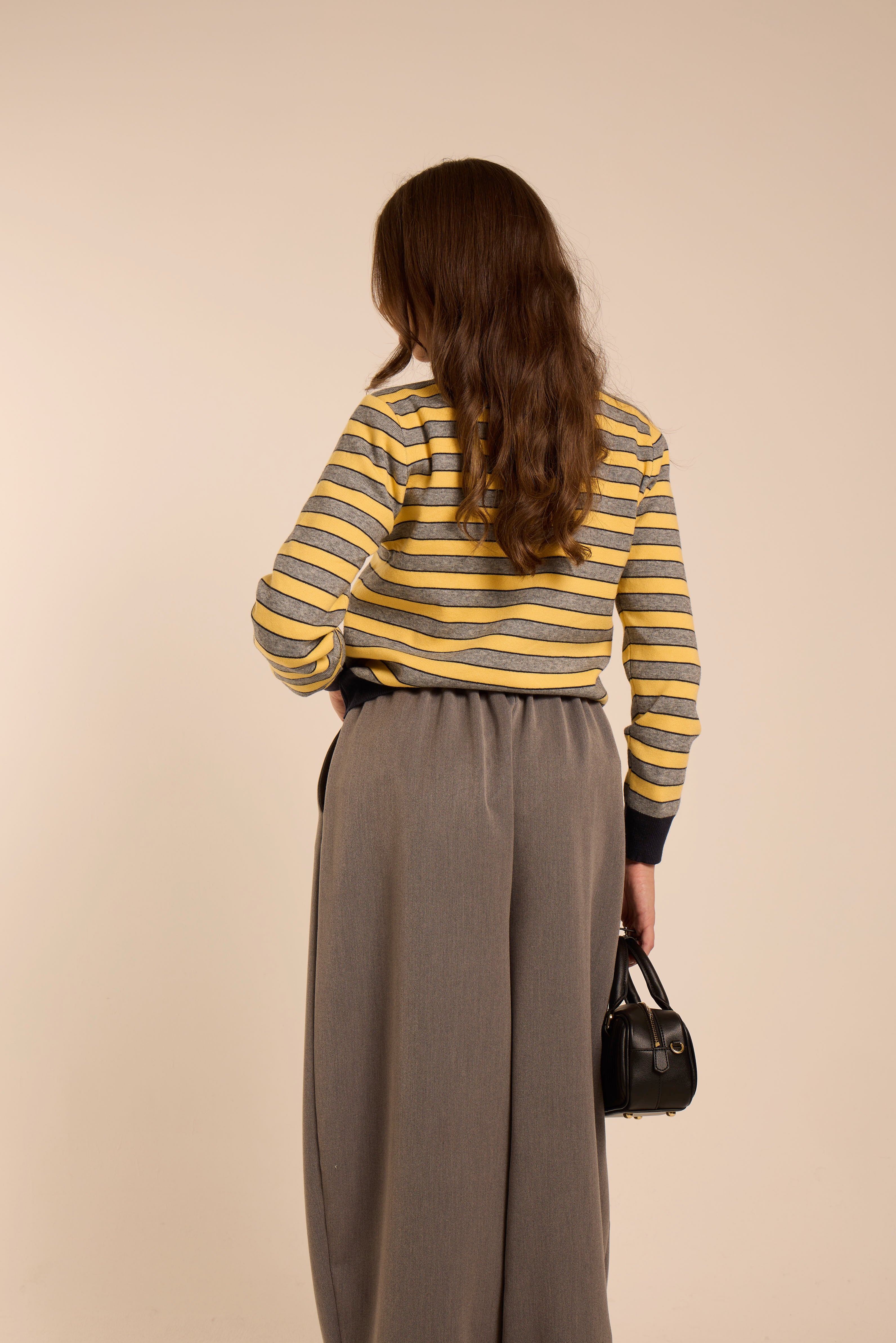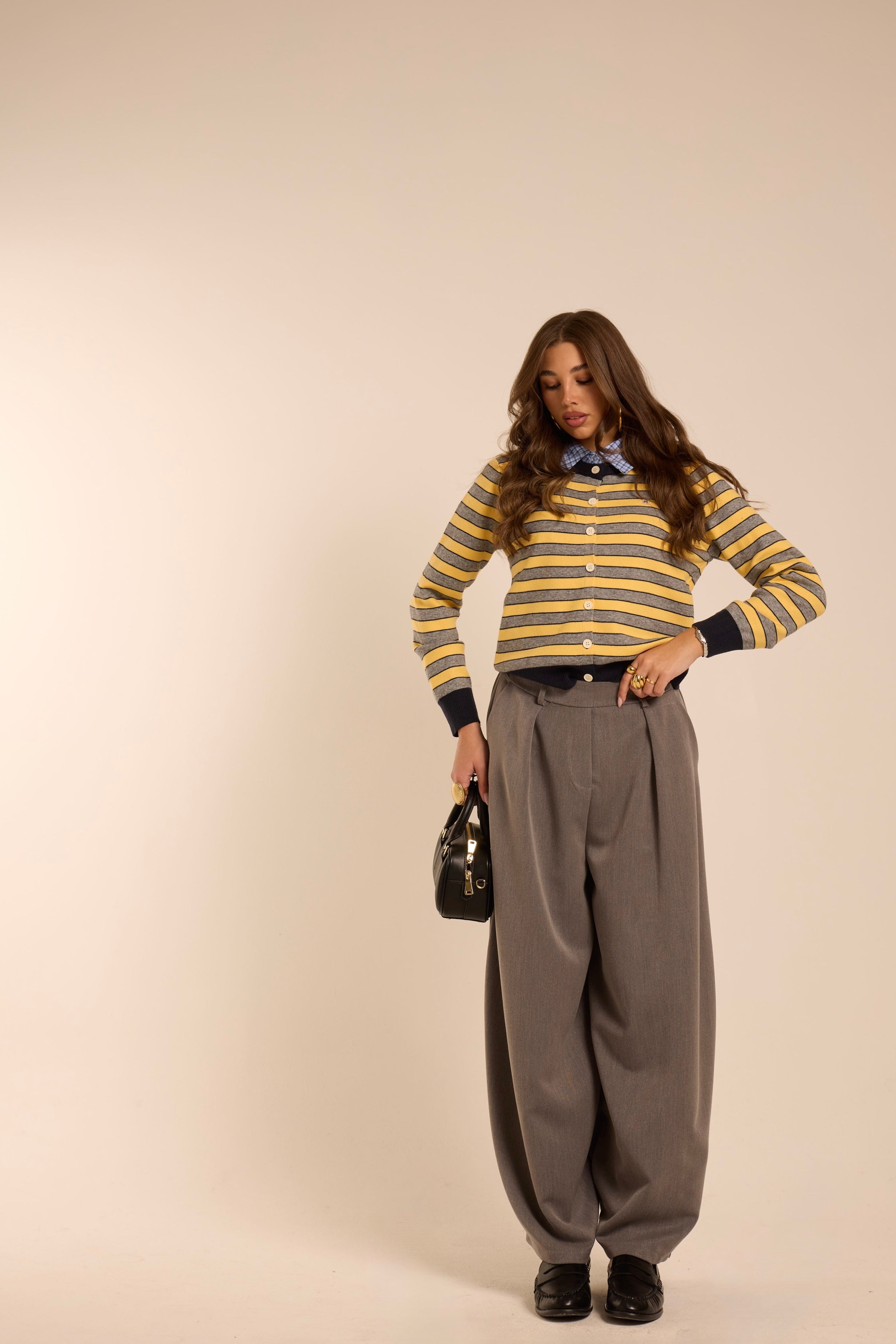 Pantalone sartoriale in tonalità navy, caratterizzato da un volume balloon morbido e strutturato. Passanti in vita per cintura. La vita regular con pinces e la gamba ampia donano un fit sofisticato e contemporaneo, perfetto per look urban-chic e outfit più ricercati.