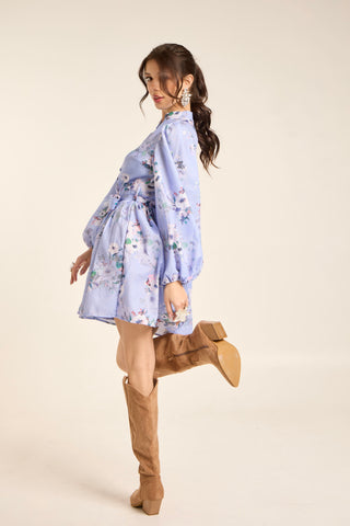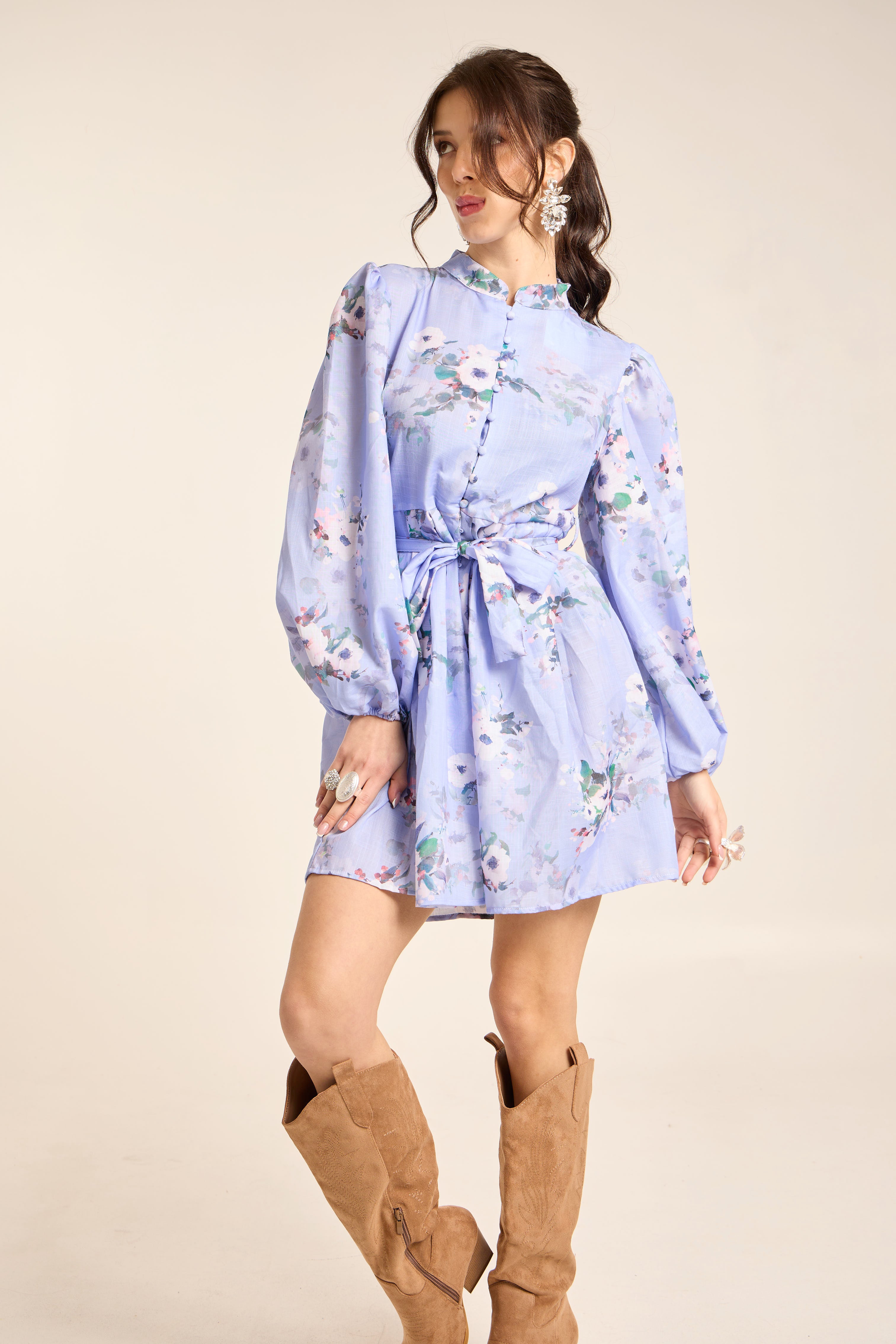Abito a manica lunga. Strutturato. Con manica a palloncino. Stretto in vita con laccio. Gonna che cade dritta e morbida con pince. Dettaglio bottoni tono su tono.
