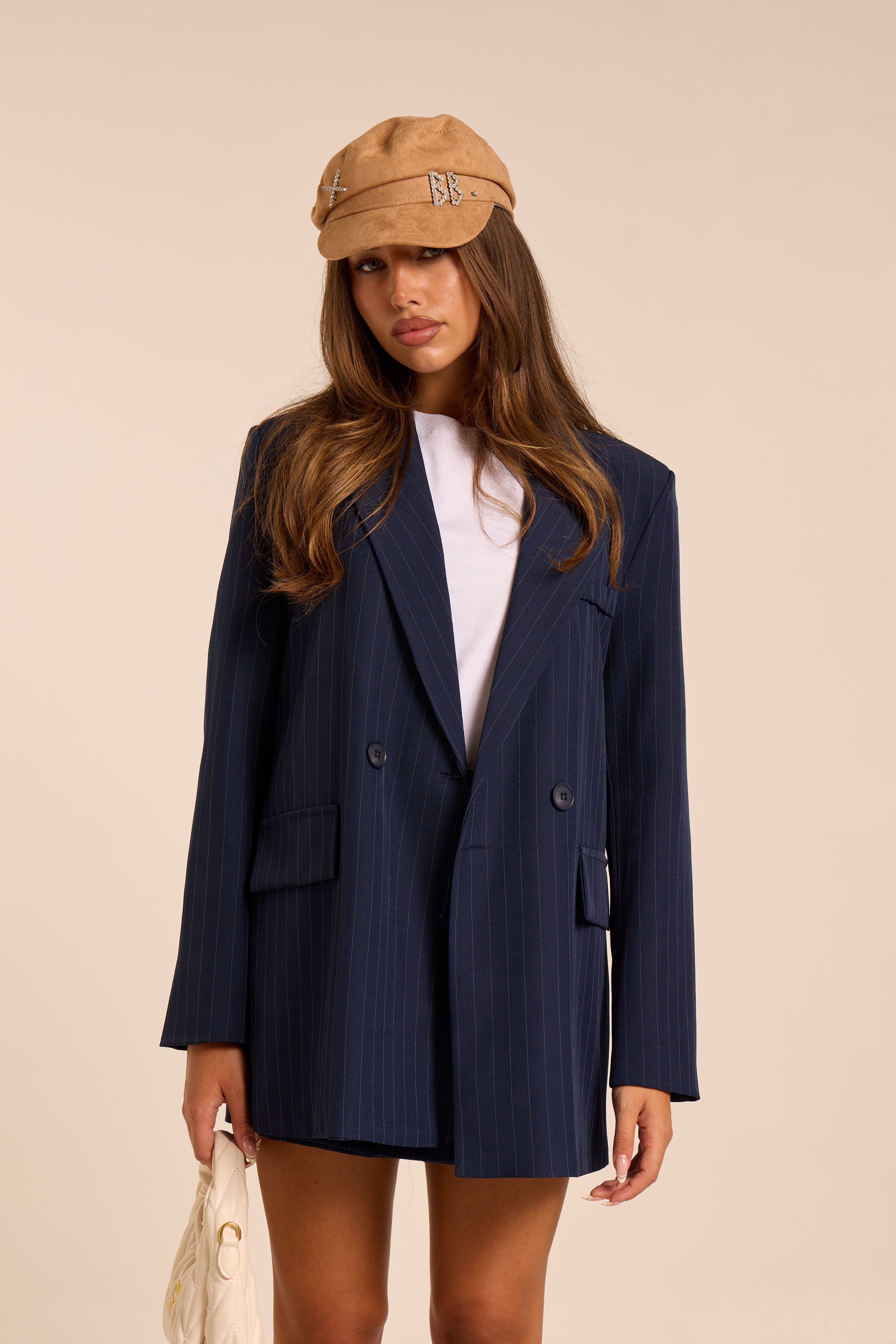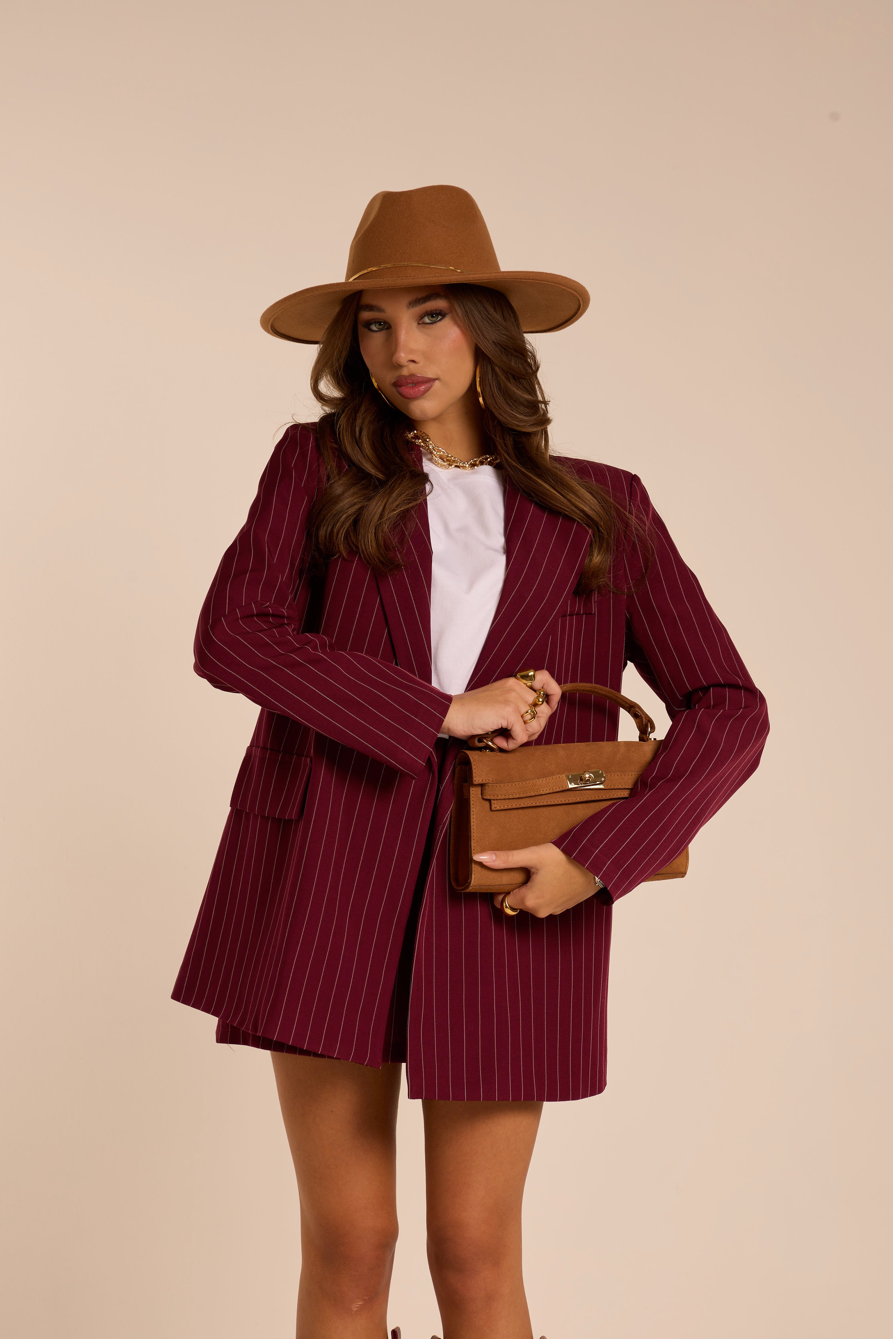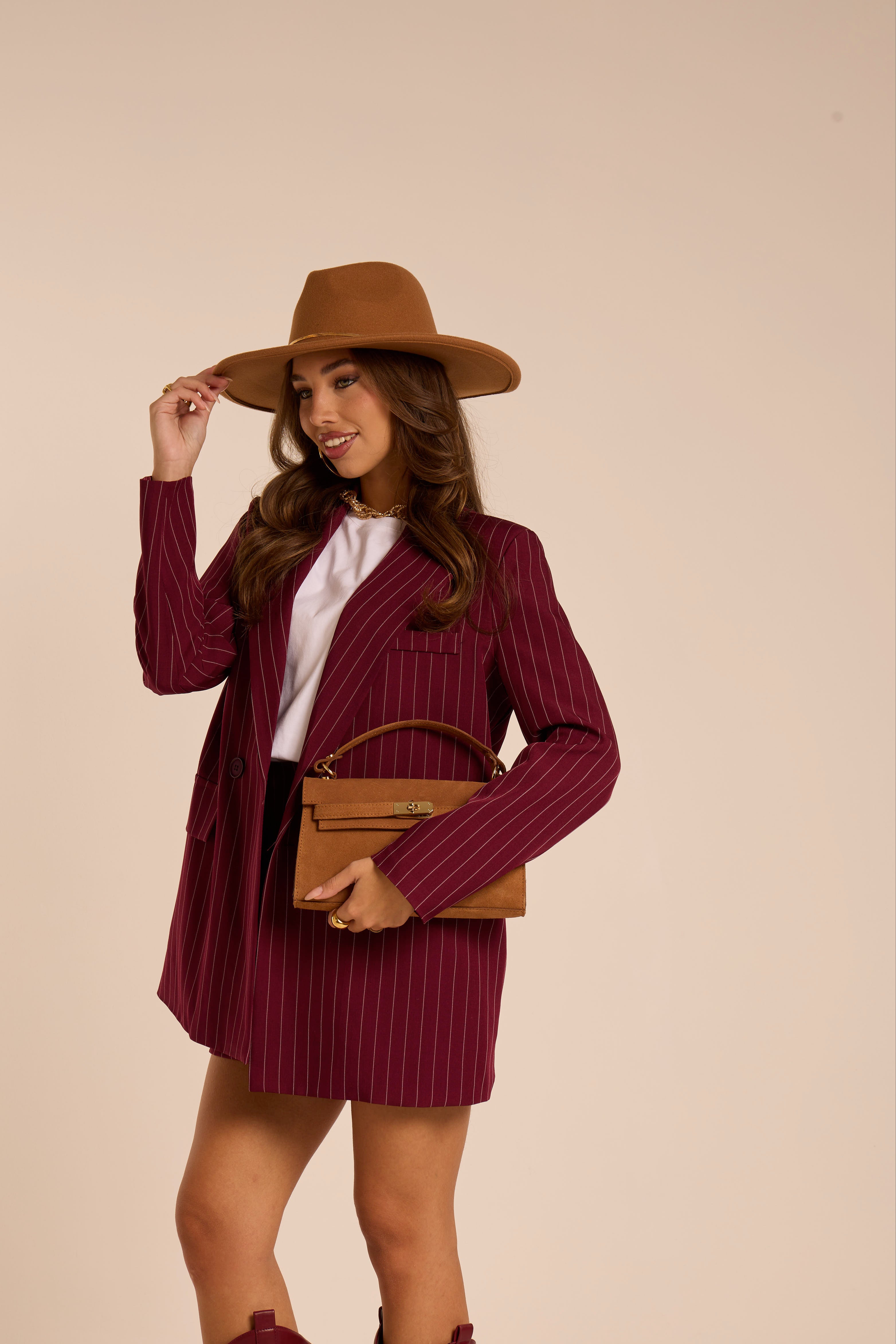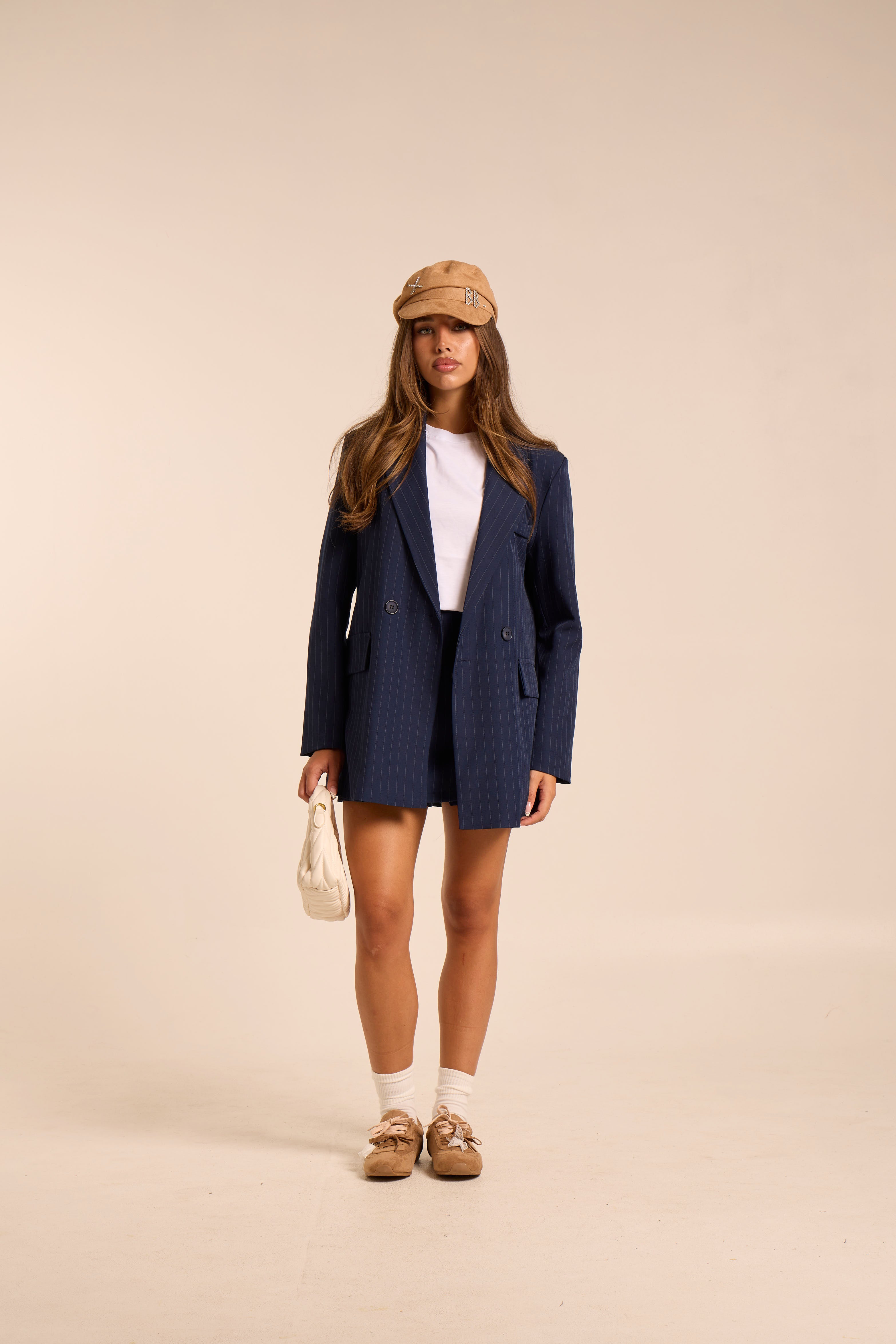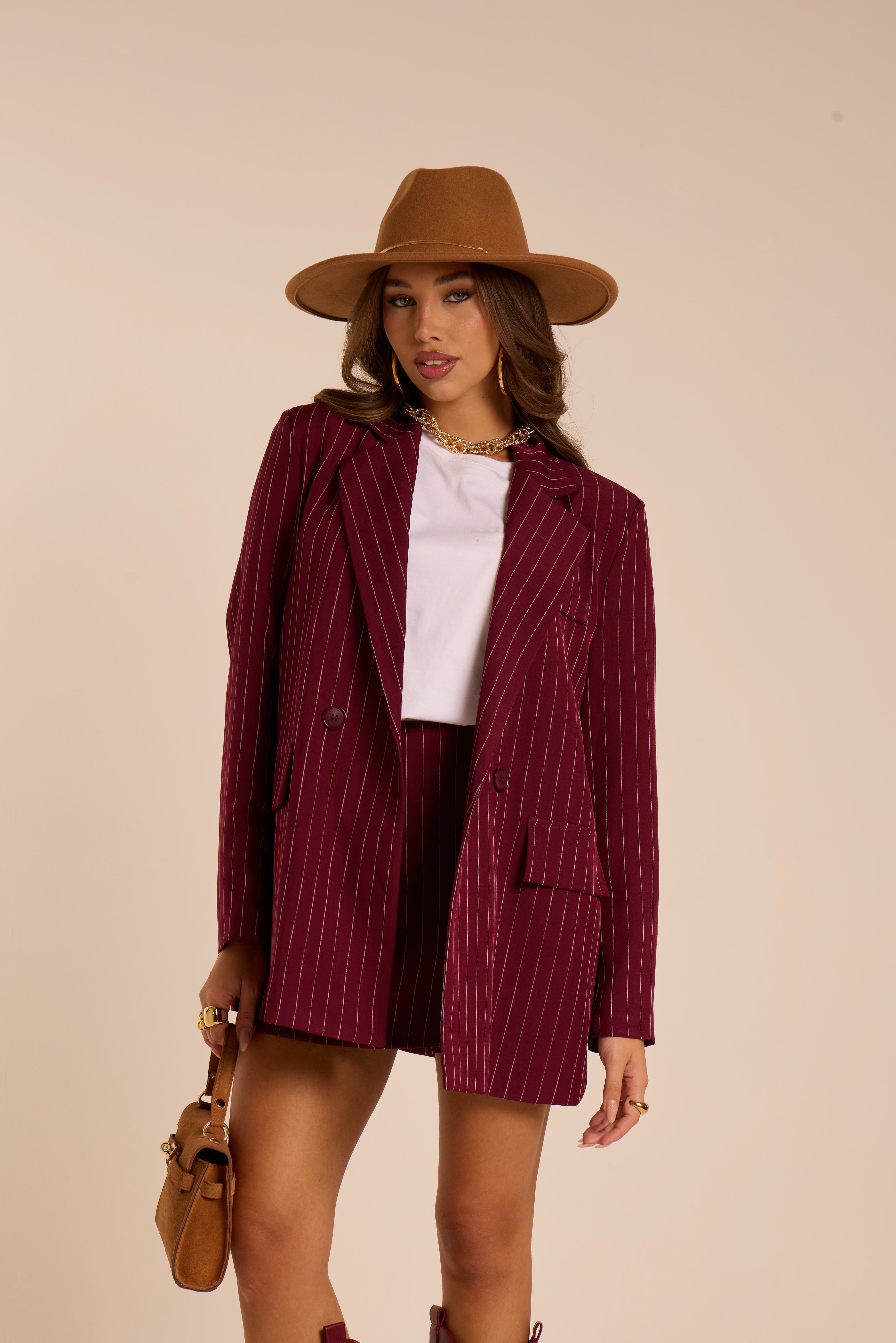 Completo composto da blazer e gonna pantaloncino. Blazer strutturato, con spallina imbottita. Chiusura ad intreccio con doppi bottoni. Gonna pantaloncino con chiusura in linea.