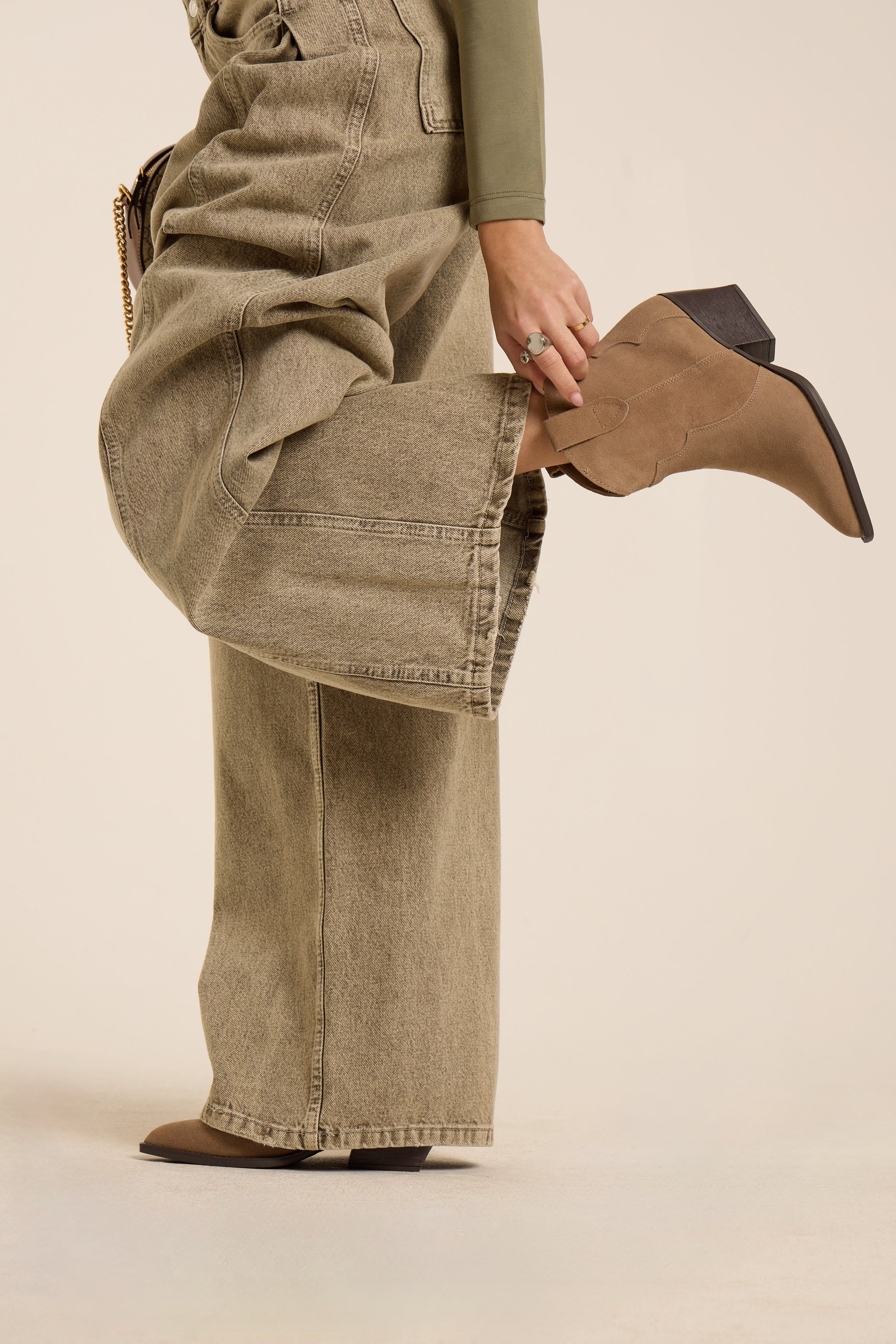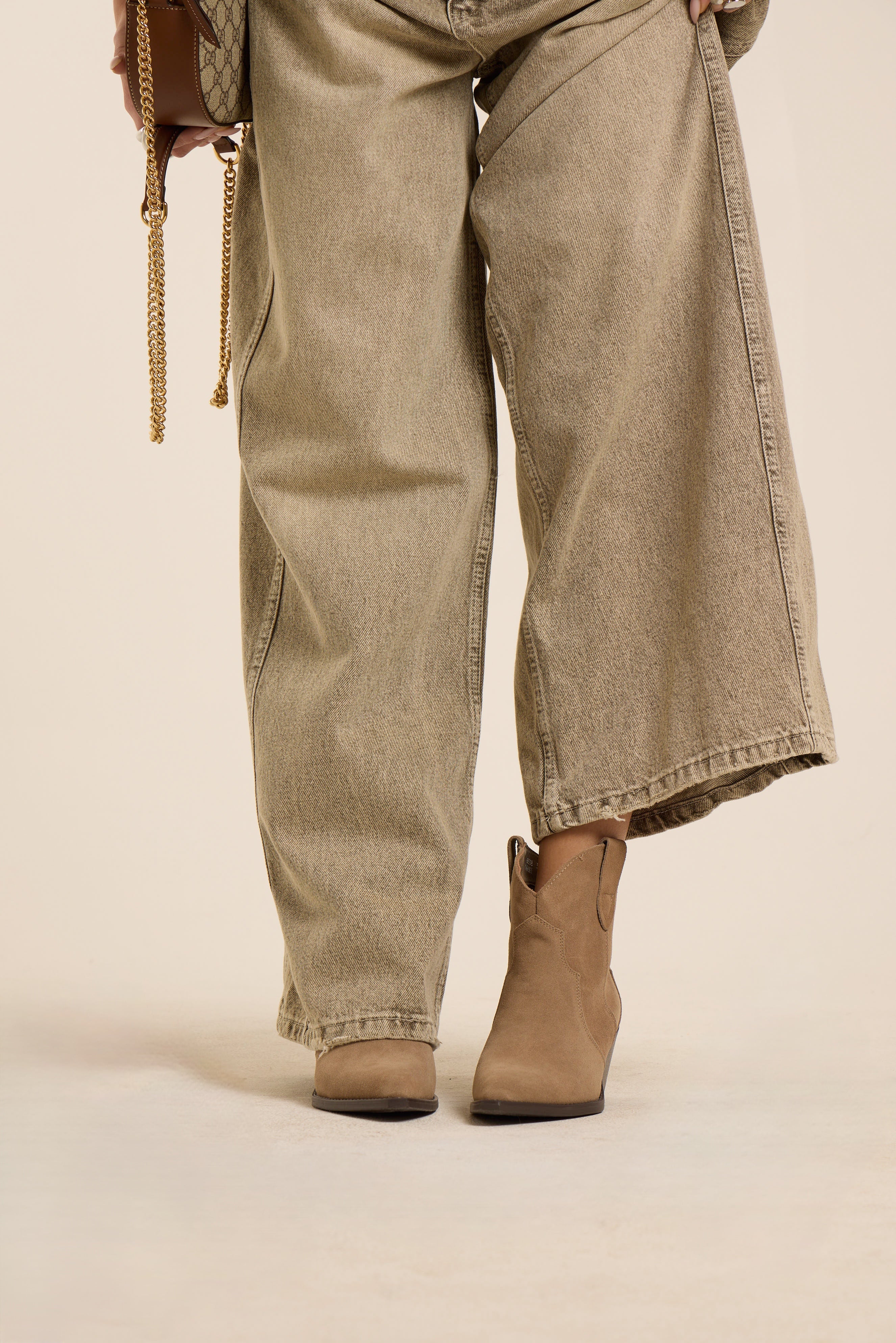 Texano basso, basico in suede. In vera pelle. Cuciture e rifiniture tono su tono. Suola a contrasto colore.