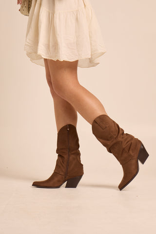 Texano mezza misura. Effetto risvolto. Simil camoscio. Cerniera tono su tono laterale.