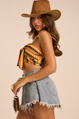 Top in maglia. Intrecciato. Elasticizzato. Dettaglio nodo regolabile. Trama a zig zag.